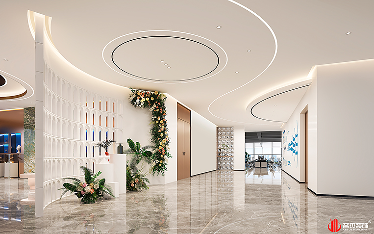 這次是一家以從事科技推廣和應用服務業為主的企業,是屬于科技行業,設計團隊對科技行業是非常了解的,結合了客戶的需求,以及從現場的實際情況,設計團隊采用時尚簡約的風格來作為這個新辦公裝修設計空間的主打風格。利用傳統的天圓地方的理念,結合該企業的VI色系,塑造出一個獨特且有趣的辦公室裝修設計空間。