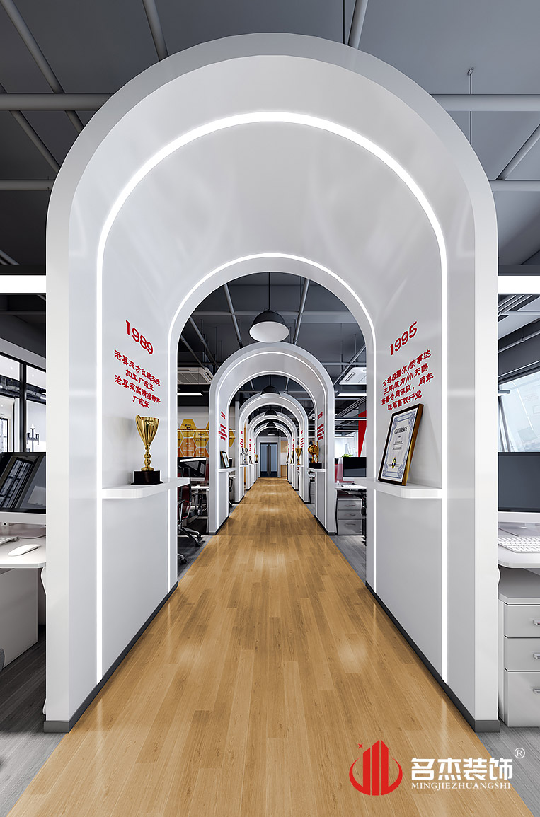 在前臺裝修設(shè)計的時候,燈帶的加入讓空間中充滿了不一樣的設(shè)計感,而且在辦公區(qū)域的過道旁邊,加入了時光隧道的設(shè)計元素,讓整個企業(yè)的發(fā)展歷程都能隨時讓人看見,企業(yè)文化也不知不覺中融入到整體的環(huán)境中。