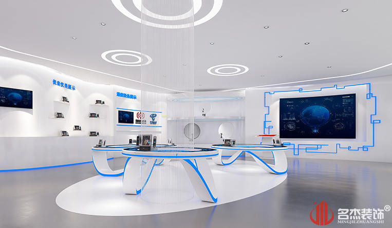 廣東機動通信局是電信運營商中一支鮮為人知的隊伍,是對整個社會來說不可或缺的;他們保障了各種緊急狀況下的通信。設計師根據機動通信局展廳設計的需求及對通信的理解,做出科技感的效果是顯而易見的,展廳主要是展示各種通信產品,我們要有高科技視覺感受和方便使用,展廳的設計也要有各種功能性區分設置。